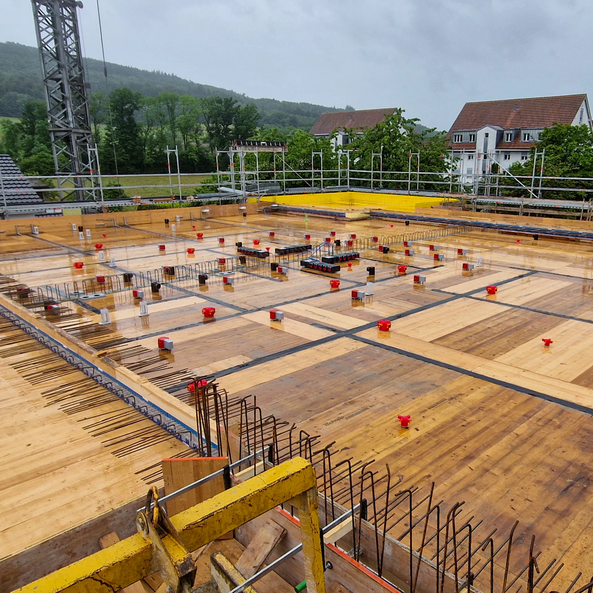 Wir erstellen Bodenplatten, Schalungen, Armierungen, Betonwände und Decken jeder Art und Grösse. Das fachgerechte Bearbeiten der Betonoberflächen gehört ebenfalls zu den Aufgaben.